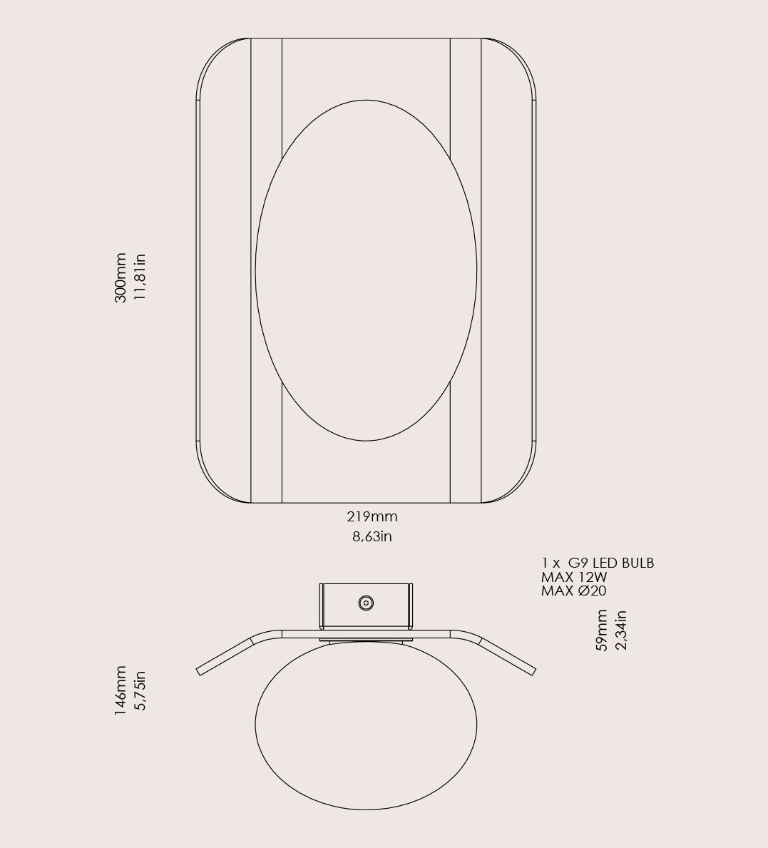 | Note | Disegno tecnico, dimensioni e lampadine si riferiscono alla variante della foto principale. Le dimmerazioni a richiesta potrebbero comportare l'aumento delle dimensioni del rosone. Per varianti cromatiche disponibili, consultare la scheda tecnica. |