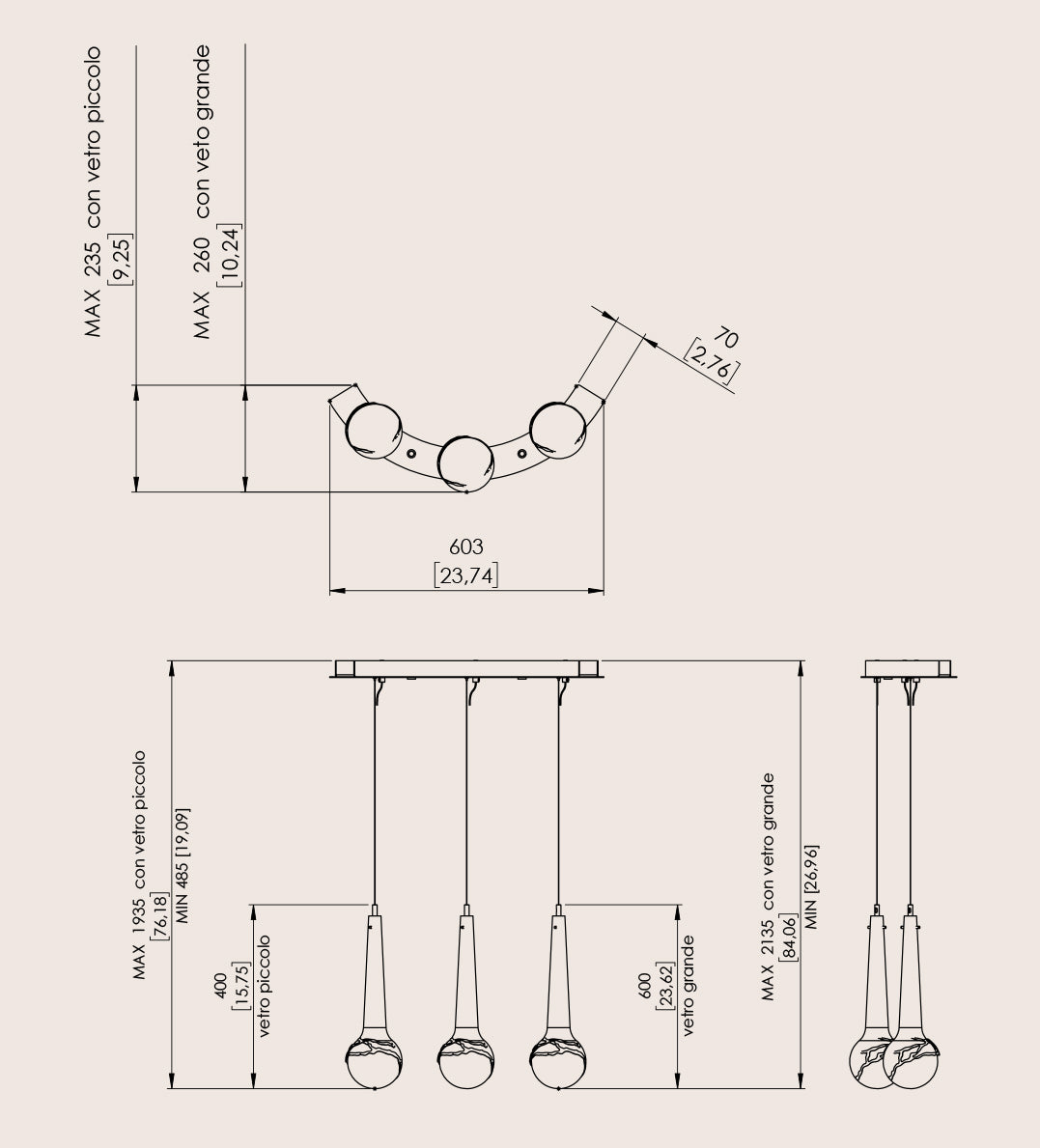 Note Disegno tecnico, dimensioni e lampadine si riferiscono alla variante della foto principale. Le dimmerazioni a richiesta potrebbero comportare l'aumento delle dimensioni del rosone. Per varianti cromatiche disponibili, consultare la scheda tecnica. | |