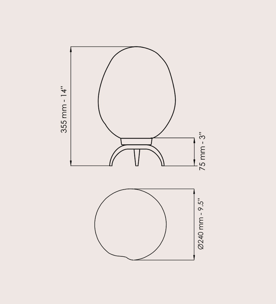 | Note | Disegno tecnico, dimensioni e lampadine si riferiscono alla variante della foto principale. Le dimmerazioni a richiesta potrebbero comportare l'aumento delle dimensioni del rosone. Per varianti cromatiche disponibili, consultare la scheda tecnica. |