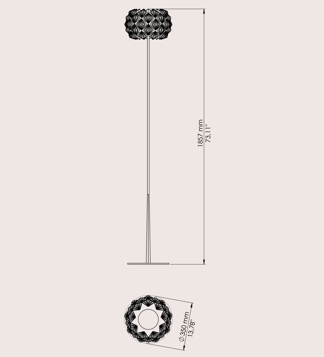 | Note | Disegno tecnico, dimensioni e lampadine si riferiscono alla variante della foto principale. Le dimmerazioni a richiesta potrebbero comportare l'aumento delle dimensioni del rosone. Per varianti cromatiche disponibili, consultare la scheda tecnica. |
