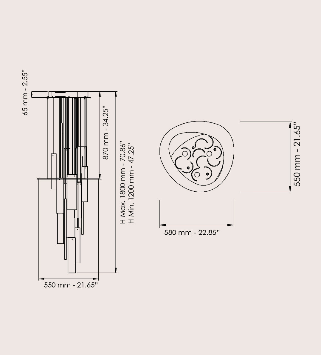 | Note | Disegno tecnico, dimensioni e lampadine si riferiscono alla variante della foto principale. Le dimmerazioni a richiesta potrebbero comportare l'aumento delle dimensioni del rosone. Per varianti cromatiche disponibili, consultare la scheda tecnica. |