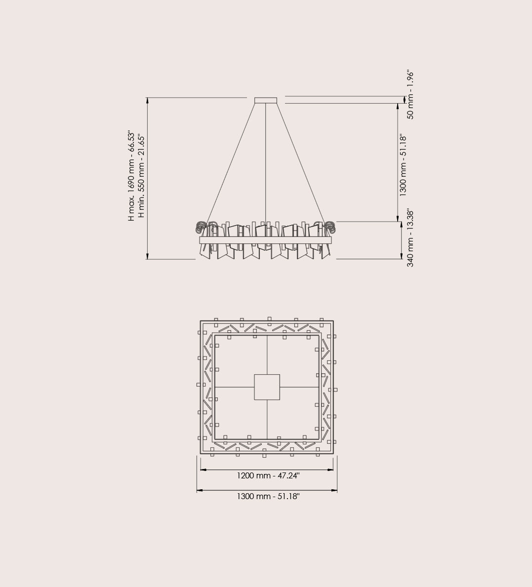 | Note | Disegno tecnico, dimensioni e lampadine si riferiscono alla variante della foto principale. Le dimmerazioni a richiesta potrebbero comportare l'aumento delle dimensioni del rosone. Per varianti cromatiche disponibili, consultare la scheda tecnica. |