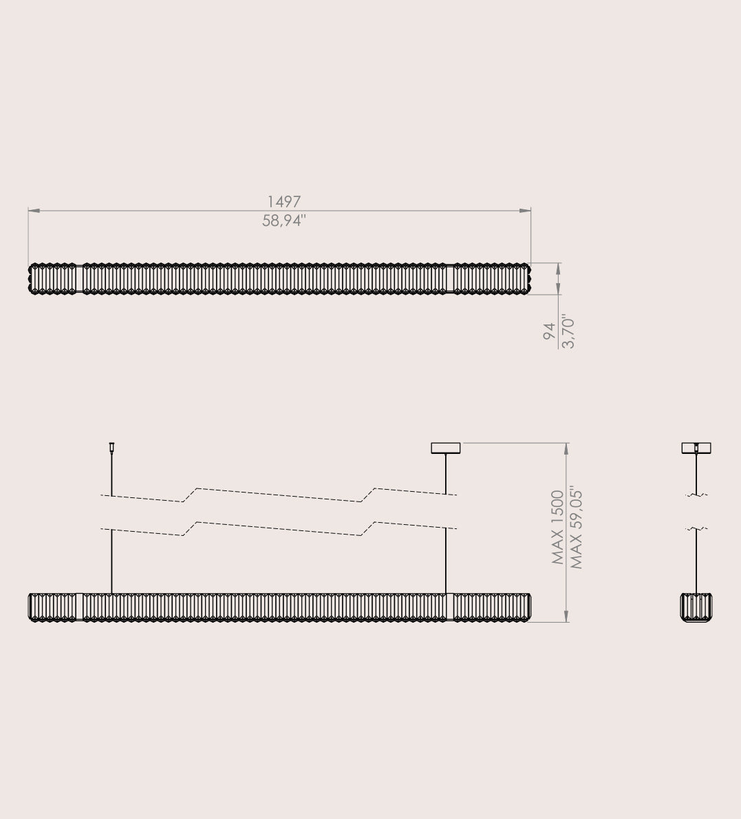 | Note | Disegno tecnico, dimensioni e lampadine si riferiscono alla variante della foto principale. Le dimmerazioni a richiesta potrebbero comportare l'aumento delle dimensioni del rosone. Per varianti cromatiche disponibili, consultare la scheda tecnica. |