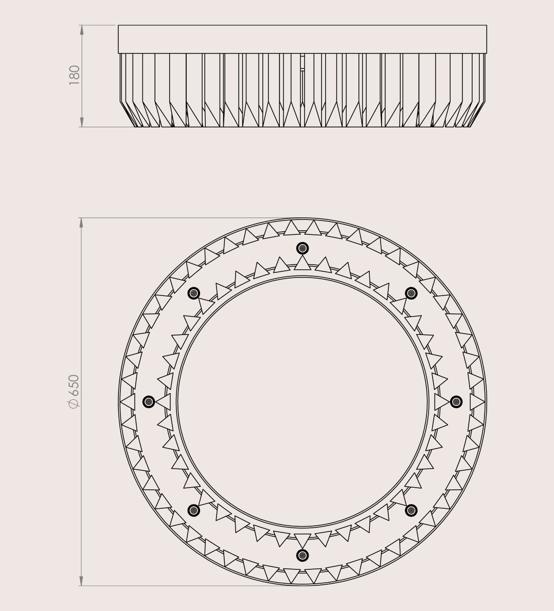 | Note | Disegno tecnico, dimensioni e lampadine si riferiscono alla variante della foto principale. Le dimmerazioni a richiesta potrebbero comportare l'aumento delle dimensioni del rosone. Per varianti cromatiche disponibili, consultare la scheda tecnica. |