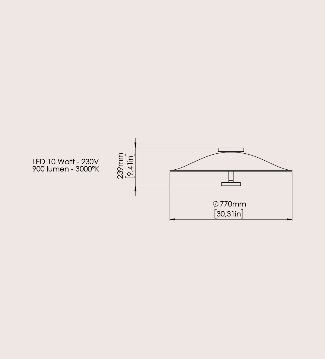 | Note | Disegno tecnico, dimensioni e lampadine si riferiscono alla variante della foto principale. Le dimmerazioni a richiesta potrebbero comportare l'aumento delle dimensioni del rosone. Per varianti cromatiche disponibili, consultare la scheda tecnica. |